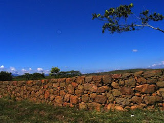 Cuando ya tenemos las curvas a nivel, hacemos una media grada donde irá la barrera muerta para que la piedra quede firme; hay que buscar las piedras más planas y grandes para centrarlas en la primera fila y luego sobreponer las otras piedras.