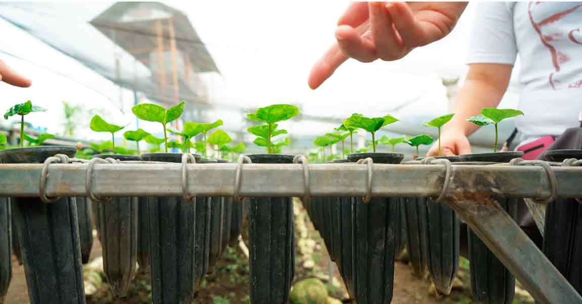 Otra de las ventajas es que se necesita menos sustrato por bolsa, el riego es fundamental para el éxito de la producción, utilizando micro aspersores y que se produzcan bajo sombra al 50%.